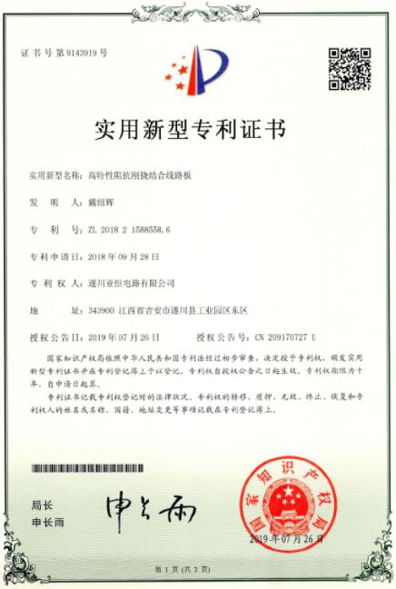 亞恒電路有限公司首期投資8000萬元人民幣,在自購土地上建立了完全屬于本公司的獨立廠房,擁有獨立的環保處理系統,工廠總占地面積15000平方米,廠房面積18000平方米,現有設備能力可以完全生成產能50萬平方米。